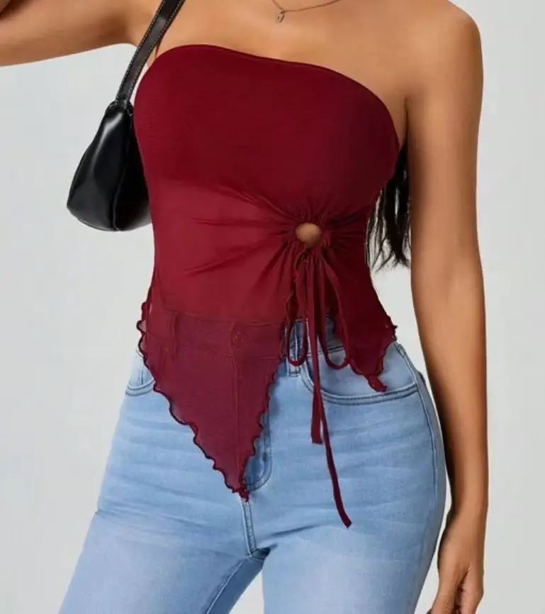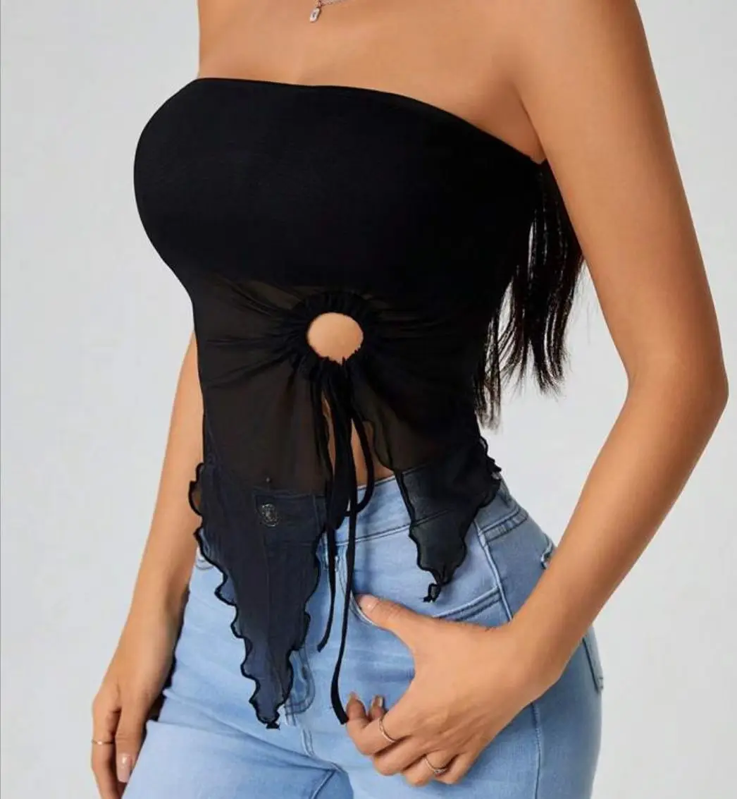This top exudes a high-end sensuality with its strapless design and daring shoulder exposure, perfect for the fashion-forward woman.